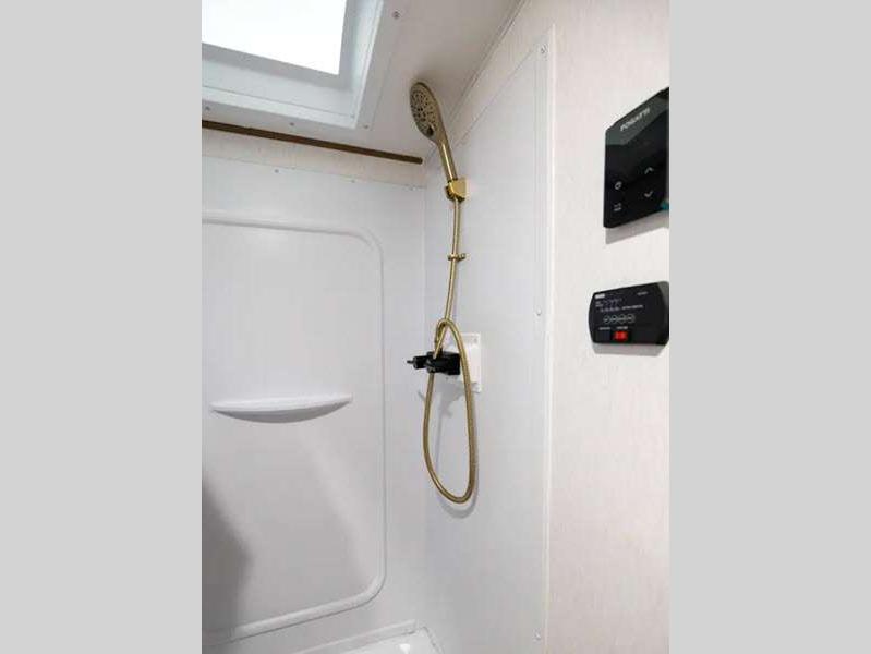 Sleeps 3 Length 22 ft 5 in Ext Width 7 ft 6 in Ext Height 10 ft 2 in Hitch Weight 436 lbs GVWR 4700 lbs Dry Weight 3420 lbs Cargo Capacity 1280 lbs Fresh Water Capacity 52 gals Grey Water Capacity 27 gals Black Water Capacity 27 gals Available Beds Queen Refrigerator Type 12V Refrigerator Size 10 cu ft Cooktop Burners 2 Number of Awnings 1 LP Tank Capacity 20 lbs Water Heater Type On Demand Tankless AC BTU 15000 btu Awning Info 12' Power w/LED Lights Axle Count 1 Number of LP Tanks 2 Shower Type Standard Electrical Service 55 amp Solar Wattage 400 watts Similar Floorplans