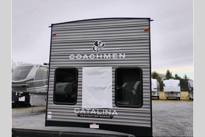 With any Catalina Destination trailer by Coachmen, you will enjoy comfortable extended stays wherever you decide to set up camp! The full length frame outriggers add strength to each unit, along with a seamless Alpha Roof membrane and Norco electromagnetic, powder coated chassis. You will love the open views provided by the residential-style sliding glass patio door, plus there are GE appliances, woodplank linoleum flooring, and hard valance window treatments to make your space feel more like home. Head outside to find a convenient "Leash Link" quick hookup D-ring for your furry friends, premium JBL exterior speakers, flush mount baggage doors for your gear, and the list of amenities goes on!