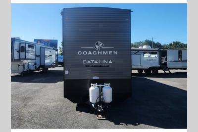 With any Catalina Destination trailer by Coachmen, you will enjoy comfortable extended stays wherever you decide to set up camp! The full length frame outriggers add strength to each unit, along with a seamless Alpha Roof membrane and Norco electromagnetic, powder coated chassis. You will love the open views provided by the residential-style sliding glass patio door, plus there are GE appliances, woodplank linoleum flooring, and hard valance window treatments to make your space feel more like home. Head outside to find a convenient "Leash Link" quick hookup D-ring for your furry friends, premium JBL exterior speakers, flush mount baggage doors for your gear, and the list of amenities goes on!