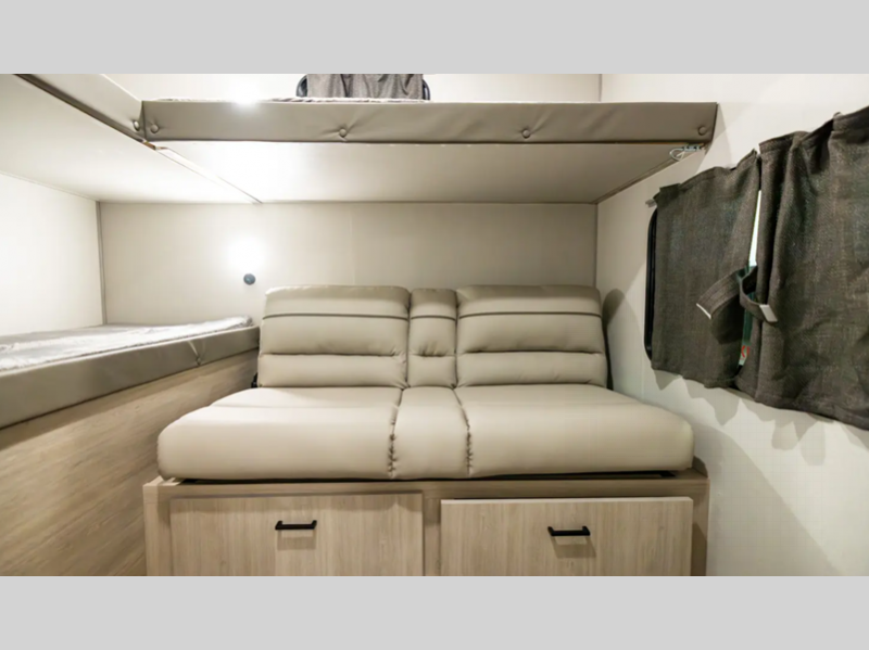 Sleeps 10 Slides 1 Length 33 ft 8 in Ext Width 8 ft Ext Height 11 ft 1 in Int Height 6 ft 9 in Hitch Weight 834 lbs GVWR 9264 lbs Dry Weight 7264 lbs Cargo Capacity 2000 lbs Fresh Water Capacity 38 gals Grey Water Capacity 42 gals Black Water Capacity 28 gals Furnace BTU 35000 btu Number Of Bunks 3 Available Beds RV Queen Refrigerator Type GE Stainless 12V Refrigerator Size 10.7 cu ft Cooktop Burners 3 Number of Awnings 1 LP Tank Capacity 20 lbs Water Heater Type Tankless On Demand AC BTU 13500 btu Awning Info 18' Electric w/Multicolor LED Strip & Remote Axle Count 2 Number of LP Tanks 2 Shower Type Standard Electrical Service 30 amp Similar Floorplans