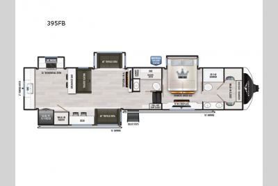 Sleeps 6 Slides 4 Length 44 ft 1 in Ext Width 8 ft 6 in Ext Height 13 ft 3 in Hitch Weight 2810 lbs Dry Weight 15794 lbs Cargo Capacity 3016 lbs Fresh Water Capacity 64 gals Grey Water Capacity 132 gals Black Water Capacity 88 gals Furnace BTU 40000 btu Available Beds King Refrigerator Type 12V French Door with Double Drawer Freezer Refrigerator Size 16 cu ft Cooktop Burners 4 Shower Size 30" x 48" Number of Awnings 2 LP Tank Capacity 30 lbs Water Heater Type On Demand Tankless AC BTU 45000 btu TV Info LR TV Awning Info 16' & 18' Power with LED Lights Axle Count 2 Washer/Dryer Available Yes Number of LP Tanks 2 Shower Type Standard Electrical Service 50 amp Similar Fifth Wheel Floorplans