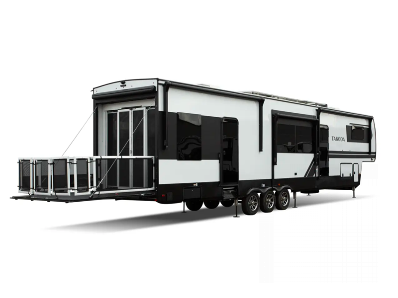 The Takoda toy hauler fifth wheels by EAST TO WEST prove how beauty and brawn come together perfectly to bring you a one-of-a-kind RV! You'll see why the Native American word, Takoda, which means 'Friend to Everyone", describes this fun toy hauler!