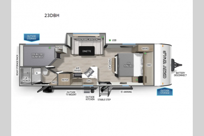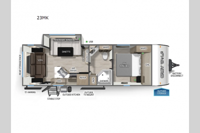 There are a wide variety of floorplans to choose from, each with comfortable seating and sleeping spaces, bath and kitchen amenities, plus plenty of storage spaces for your personal belongings, gear, food and more. Each Cherokee Grey Wolf is constructed with solid construction materials for added durability.