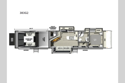 There is a 3,000 lb. rated ramp door on each model, along with DuraPoxy gas/oil resistant flooring, and 5,000 lbs. tie-downs to keep your toys secure on the way to the campground. You can enjoy your toy hauler for years to come thanks to the aluminum frame sidewalls and radius PVC walk-on roof, and the 102" wide body construction will make it easier than ever to load up dirt bikes, four-wheelers, or kayaks! Inside, you'll love the zebra shades in the living areas, the glass shower doors, the quick set garage bed system, and many more comforts!