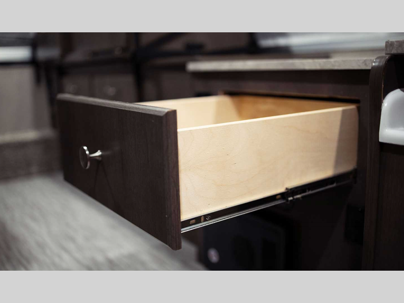 - Wood drawers and cabinets with full extension metal guides