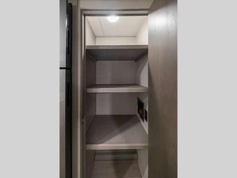Each model is constructed with a BAL NXG frame for durability, and a smooth metal front for better fuel efficiency while towing. There are magnetic baggage door latches outside, along with a power awning with an LED light strip and adjustable legs, an outside shower with hot and cold water, and many more conveniences!