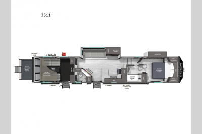 Sleeps 7 Slides 2 Length 41 ft 9 in Ext Width 8 ft 8 in Ext Height 13 ft 3 in Int Height 8 ft 3 in Hitch Weight 2990 lbs GVWR 17500 lbs Dry Weight 13405 lbs Cargo Capacity 4095 lbs Fresh Water Capacity 106 gals Grey Water Capacity 87 gals Black Water Capacity 87 gals Furnace BTU 35000 btu Generator 6kW Yamaha Fuel Capacity 30 gals Number Of Bunks 1 Available Beds Queen Refrigerator Type 12V Cooktop Burners 3 Shower Size 30" x 48" Number of Awnings 2 Garage Size 11 ft LP Tank Capacity 30 lbs Water Heater Type Tankless TV Info LR 4K Smart LED HDTV Awning Info 11' & 17" w/LED Lights Axle Count 2 Washer/Dryer Available Yes Number of LP Tanks 2 Shower Type Standard Electrical Service 50 amp Similar Toy Hauler Fifth Wheel Floorplans