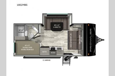 Sleeps 8 Slides 1 Length 23 ft 7 in Ext Width 8 ft Ext Height 9 ft 8 in Int Height 6 ft 6 in Hitch Weight 610 lbs GVWR 4995 lbs Dry Weight 4045 lbs Cargo Capacity 950 lbs Fresh Water Capacity 30 gals Grey Water Capacity 20 gals Black Water Capacity 39 gals Number Of Bunks 2 Available Beds Murphy Refrigerator Type 12V Cooktop Burners 2 Shower Size 30" x 36" Number of Awnings 1 LP Tank Capacity 20 lbs Water Heater Type On Demand Tankless Awning Info 13' Power Axle Count 1 Number of LP Tanks 1 Shower Type Standard Electrical Service 30 amp Similar Travel Trailer Floorplans