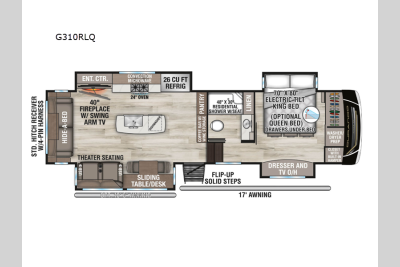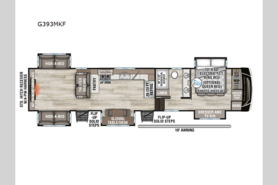 The Durango Gold fifth wheels by KZ are are perfect for your next journey go see new places and discover new things! Some key features include a 40,000 BTU furnace, a stainless dishwasher, and an electric tilt bed with Serta Comfort foam king mattress.