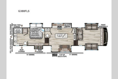 Each fifth wheel is built with 101" wide-body construction, an extra-reinforced heavy-duty front fiberglass cap, and features the All-Weather Insulation Package so you can enjoy camping in all kinds of weather. The six-point hydraulic auto-leveling makes setting up easier, and the KZ Engage Powered by OneControl features an app that you can download to control all of your unit's functions right from your smartphone. The Durango Gold's kitchen is a chef's dream with its 26-cu. ft. house refrigerator with a 2,000W inverter, 30" convection microwave, 24" oven with four-burner range, plus abundant storage!