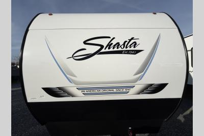 With each Shasta travel trailer by Shasta RVs, premium construction products are used such as 2x2 wood studs 16" on center or less, tinted black-framed radius safety glass windows, and full pass-through storage. Also included is an aerodynamic radius front profile, a front-colored rock guard to protect against road debris, a straight axle with electric breaks, and a power tongue jack for easy setup. The interior offers pocket-bored and screwed cabinets, USB charging stations, an pull down faucet, and more providing value and convenience. The 200W solar panel comes with a 30 amp controller, and the tankless water heater will provide endless hot showers.