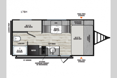 A bunkhouse model is specifically designed to house a bunk-bed section so that you can sleep even more people in your RV. Perfect for families with children, a bunkhouse takes the joy of RVing and mixes it in with the excitement of a sleep over. Bunkhouses also save space by consolidating sleeping arrangements, meaning that more of your interior square footage goes towards utility. There are so many amazing bunkhouse floorplans for you to get excited about at incredibly affordable prices here at RV Value Mart!
